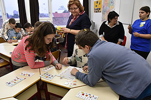 A versenyzők ügyesen teljesítették a feladatokat, és remek hangulatban zajlott az egészséges szendvicsek elfogyasztása és a desszert készítése is, amit bekötött szemmel maguknak alkottak meg.