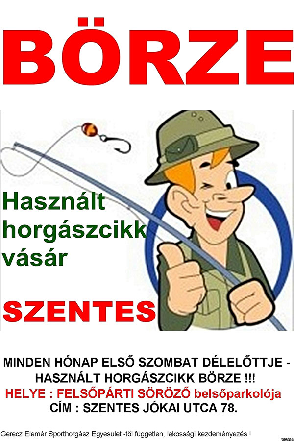 Lakossági kezdeményezésre minden hónap első szombat délelőttjén horgászcikk börzét rendeznek a Felsőpárti Söröző belső parkolójában. Minden érdeklődőt várnak!