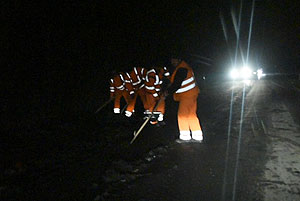 A rendőrök váltakozó irányból engedik a forgalmat és közben a KÖZÚT munkásai elkezdték az útszakasz megtisztítását.