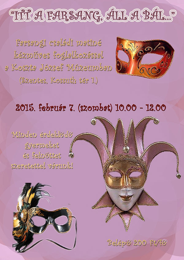2015. február 7-én farsangi kézműves matinéra várnak minden érdeklődőt a Koszta József Múzeumba 10 és 12 óra között!
