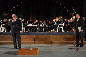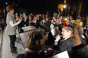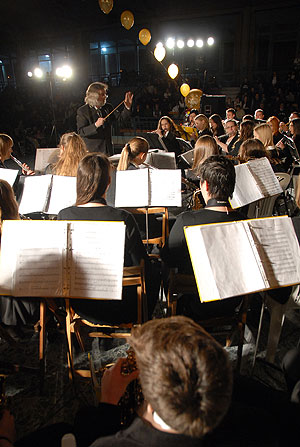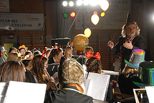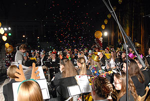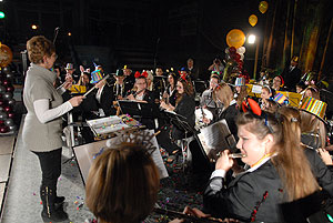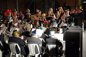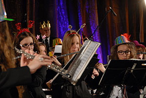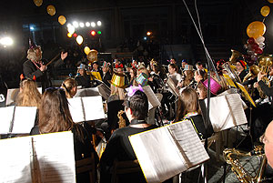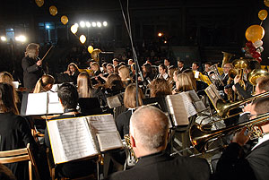 Majtényi András műsorvezető először Szirbik Imre polgármestert kérte meg, hogy köszöntse a közönséget, mondja el óévbúcsúztató gondolatait. A pergő műsorban indulók, musical-ek, filmzenék csendültek fel a Városi Fúvószenekar előadásában. A Bárdos Lajos Vegyeskar - Nagy János irányításával- egy Bárdos és egy Karai művel lépett fel a koncert első részében.