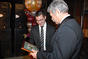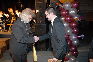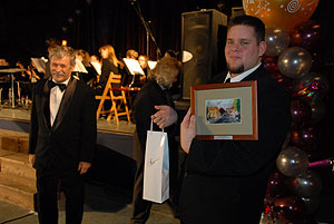 Már hagyomány, hogy ezen a koncerten köszöntik azokat a zenekari tagokat, akik hosszú évek óta oszlopos tagjai a Városi Fúvószenekarnak. Idén Takács Ádám, Török Bence és Rácz József vehetett át elismerést Nagy János egyesületi elnöktől és Mihály Béla karnagytól.