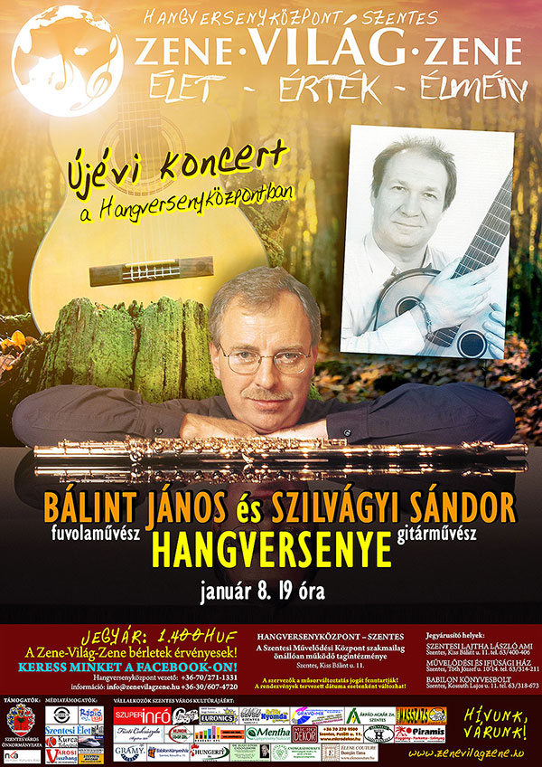 Zene-Világ-Zene: Újévi koncert 2015. január 8. (csütörtök) 19 óra Bálint János fuvolaművész és Szilvágyi Sándor gitárművész koncert