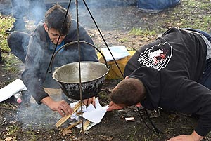 18:30-19:30 Halihó, Falni jó! - vacsora verseny – (1-3 bázispontért) - Kalandpark Szokás szerint az elkészült vacsora két módon is zsűrizésre került. Az egyik zsűri a csapatok maguk voltak, hiszen ha nem lett finom az étel, akkor nyilvánvalóan nem lett finom vacsorájuk. A játékmesterek is pontoztak, és közben eldőlt az „Egy gyufa” tűzgyújtó verseny eredménye is. Idén a Játékmesterek is főztek (versenyen kívülJ). Első helyen 3 csapat végzett holtversenyben, a MEZGÉ, a Pollák, és a KÖZGÉ.