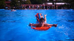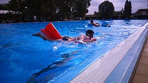 11:10 – 12:10 - Matracos gyorsasági verseny (1-5 bázispont) - Üdülőközpont Matracos gyorsasági verseny a Harc a kincsért kalandvetélkedő elengedhetetlen versenyszáma. A versenyszám lebonyolításához segítséget nyújtott a Szentesi Üdülőközpont, amely az új 50-es medencét ajánlotta fel a versenyszám idejére térítésmentesen. Ennél a feladatnál ahol a csapatoknak összesen 500 métert kellett eveznie, a Pollák győzött.