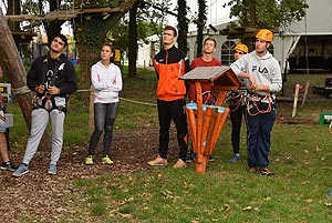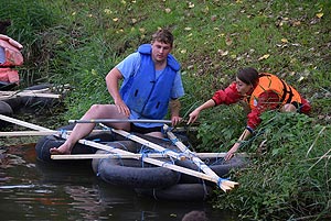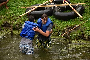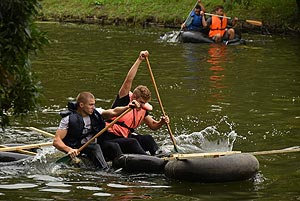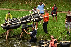 10:00 - 11:00 – Tutaj a túléléshez - tutajkészítés a másnapi feladathoz I. - Kalandpark Minden csapat kapott autó belső gumikat, és léceket ahhoz, hogy elkészítse a saját tutaját, amely a „túléléshez” kellett. A tutajok elkészítésére minden csapatnak kétszer egy óra állt rendelkezésére. Bár az elkészült tutajokat a játékmester nem pontozták, a tutajok igazi vizsgája a másnapi „Hajótörött” feladat során volt..