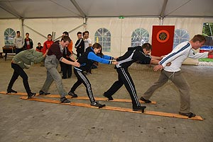 15:00 – 16:00 - Everest – rekesztorony építés (1-5 bázispont) - Kalandpark Az adott csapattag felállt az első rekeszre, majd a társai által a kezébe adott második rekeszt ráhelyezte az elsőre, miközben nem léphetett le a földre. Ezt követte a harmadik rekesz, majd a negyedik és így lassan maga alá építve egyre magasabbra jutott, miközben folyamatosan az egyre magasabb rekesztorony tetején helyezkedettel. A csapat tagjainak feladata volt a rekeszek feladása úgy hogy felállnak a rekeszekre, már amíg volt mire…. Az első helyet a Pollák szerezte meg. Köszönet Prumek Dénesnek és Kis-Kása Imrének a feladathoz nyújtott segítséget.