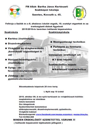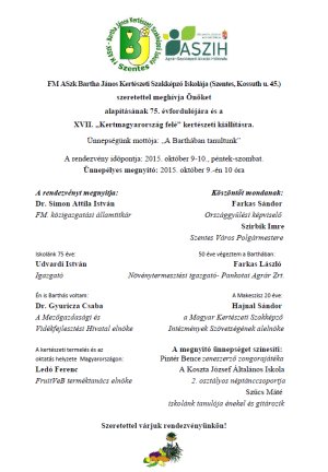 Az itt dolgozók és tanulók méltóképpen szeretnék megünnepelni az évfordulót. Ebből az alakomból az iskola 2015. október 9-10 - én két napos programsorozatot rendez, ahová nagy szeretettel várja minden volt diákját, hozzátartozóikat, ismerőseiket és mindenkit, aki a kertészet iránt foglalkozásából adódóan, vagy csak hobbiból érdeklődik.