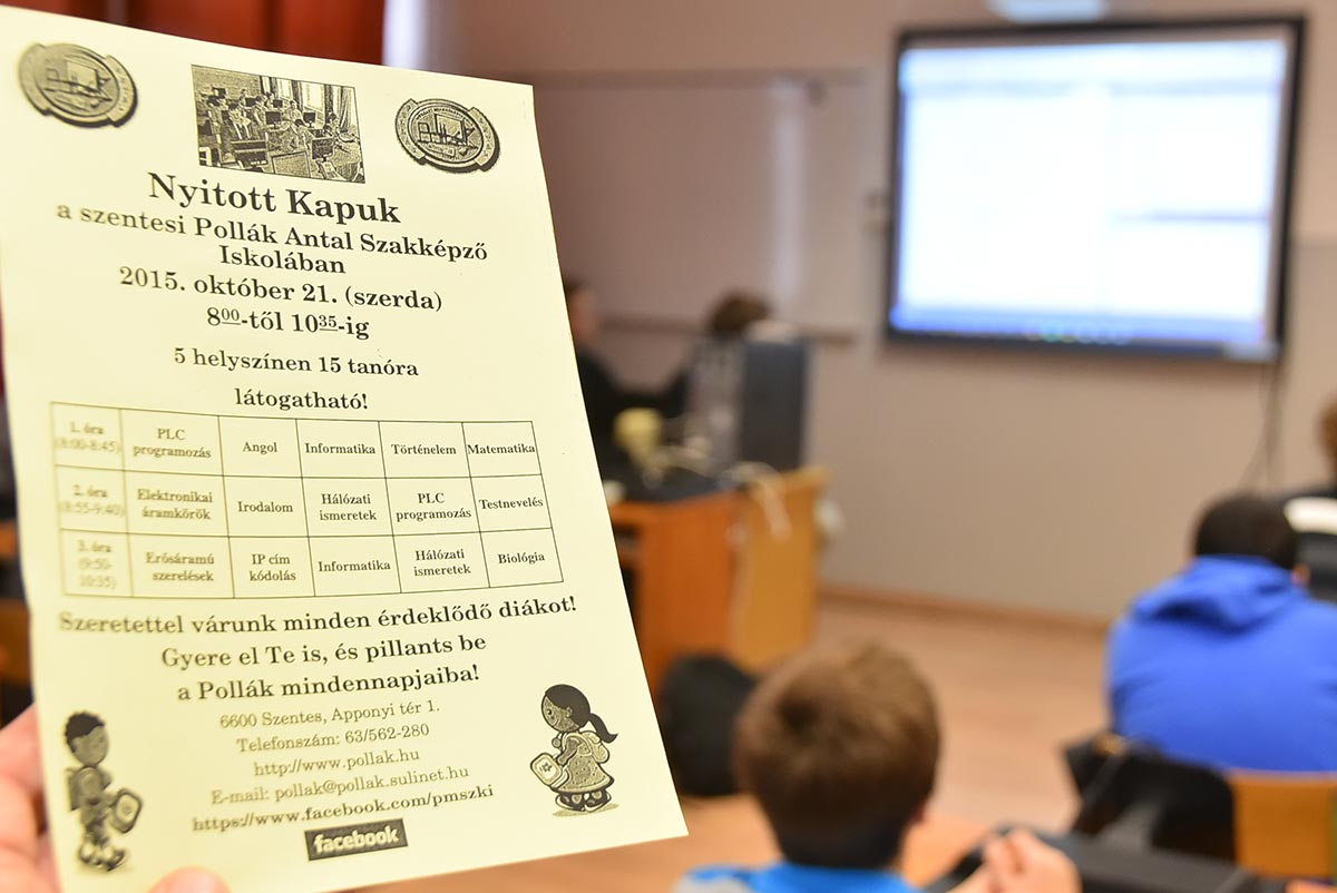 A Hódmezővásárhelyi SZC Pollák Antal Szakképző Iskolája az elmúlt héten 2015. október 14-én várta a fiatalokat, hogy a vonzó és érdekes oldalát mutassa meg a programozásnak és, hogy eloszlassák a tévhiteket.