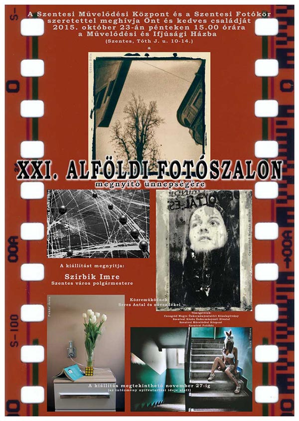 A Szentesi Művelődési Központ és a Szentesi Fotókör szeretettel meghívja Önt és kedves családját 2015. október 23-án pénteken 15.00 órára a Művelődési és Ifjúsági Házba (Szentes, Tóth J. u. 10-14.) a XXI. ALFÖLDI FOTÓSZALON megnyitó ünnepségére.