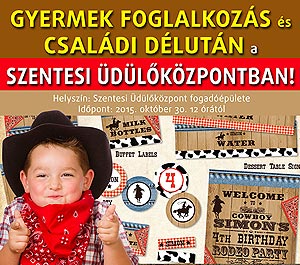 2015. október 30-án Gyermekfoglalkozásra és családi délutánra várnak minden érdeklődőt a Szentesi Üdülőközpontba, ahol az origami és kézműves foglalkozások mellett Vadnyugati Játékok várják a családokat.