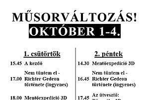 Jelentősen megváltozott a szentesi mozi előzetesen kiadott műsora október 1-4 között. További részletek a plakáton!!!