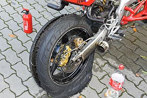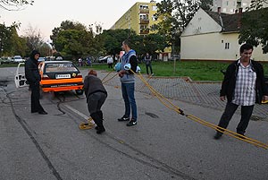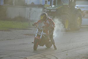 Mindenesetre látványos, füstös, égett gumiszagú produkciót láthattunk a sportcsarnoknál, melynek az összefoglalóját az alábbi videón tekinthetjük meg: