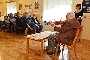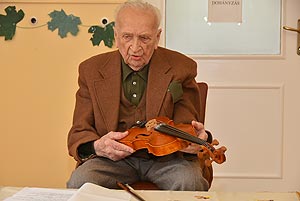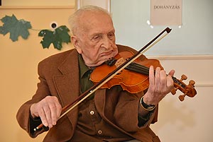 25 éves a Dózsa György utcai idősek klubja Laci bácsi fittyet hányva 101 éves korára hegedűt ragadott