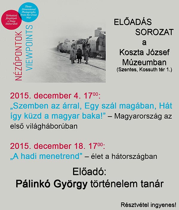 Minden érdeklődőt szeretettel várnak a Nézőpontok c. időszaki kiállításhoz kapcsolódó előadás sorozatra. Előadó: Pálinkó György történelem tanár
