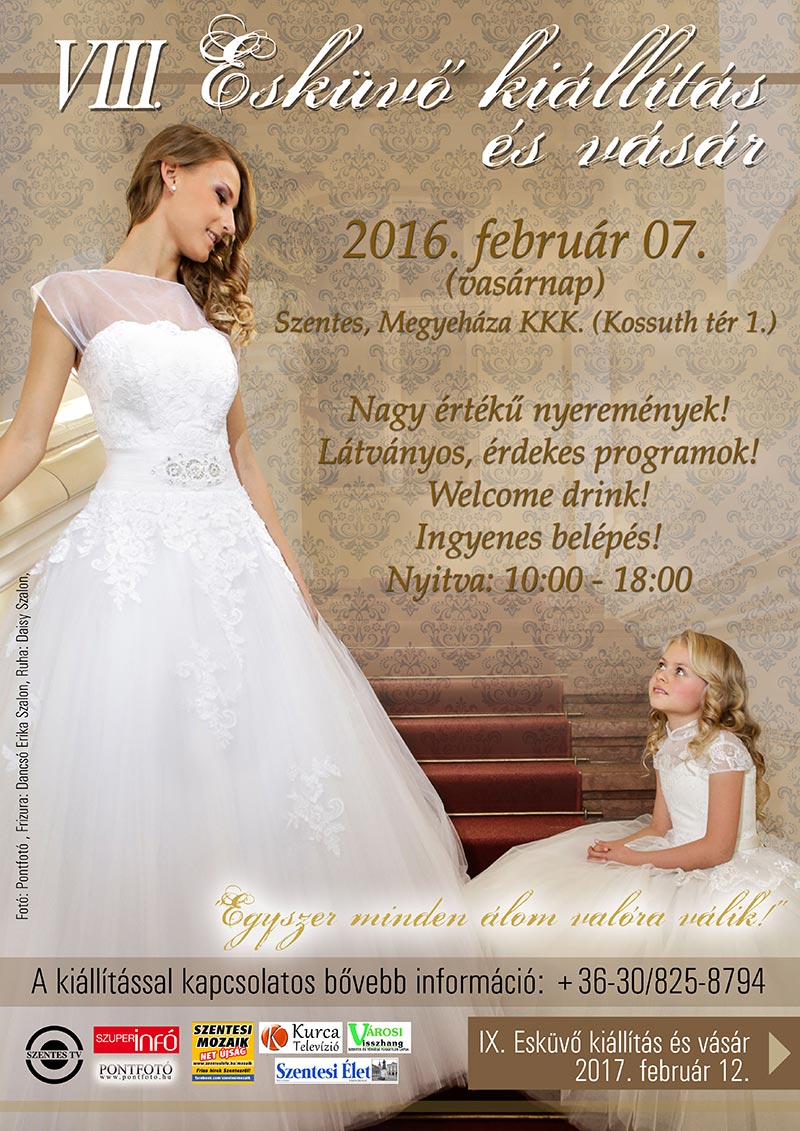 Jövődet jövőre tervezed? Készülsz a NAGY NAPRA? Íme egy lehetőség, hogy a várva várt napot még emlékezetesebbé tedd! 2016. február 7-én a Megyeháza emeletén Téged, Titeket, Önt és Önöket várja az immáron nyolcadik alkalommal megrendezendő Esküvő kiállítás és vásár.