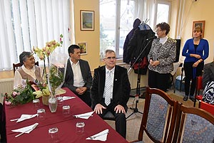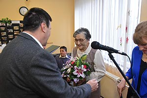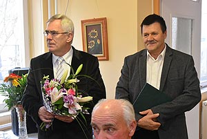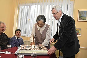 Dr. Demeter Attila virágcsokorral köszöntötte az ünnepeltet, Antal Balázs Tibor pedig Orbán Viktor miniszterelnök emléklapját adta át.
