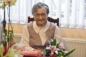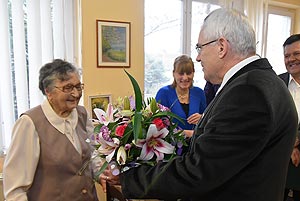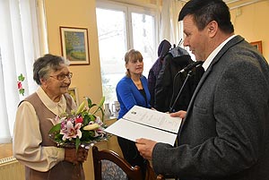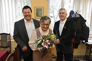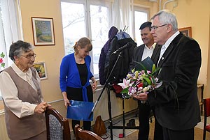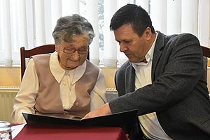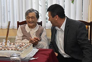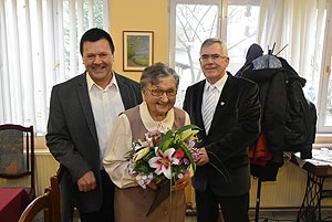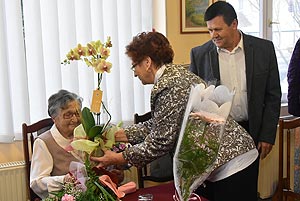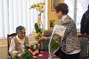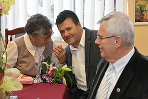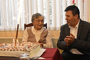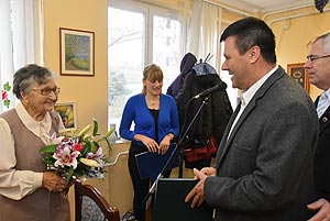 A Nagyörvény utcai idősek otthonában köszöntötte a városvezetés nevében Dr. Demeter Attila alpolgármester és Antal Balázs Tibor önkormányzati képviselő Balogh Sándorné Terike nénit 95 éves születésnapa alkalmából.