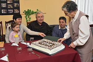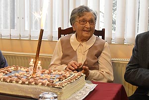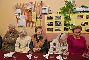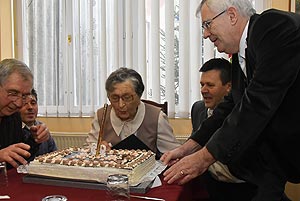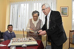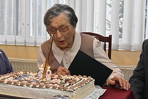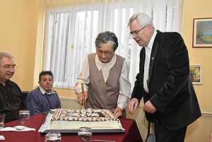 A klubtagok operett slágereket énekeltek és verseket szavaltak, és végül jött a hatalmas torta, melynek tetején tűzijáték volt a dédunoka legnagyobb örömére.
