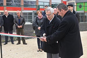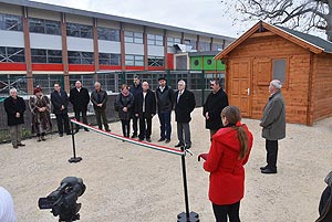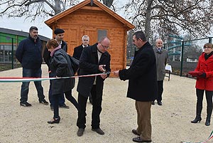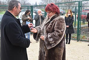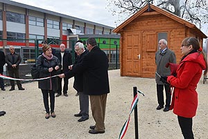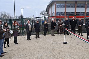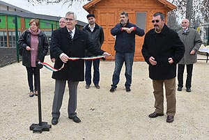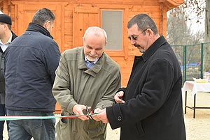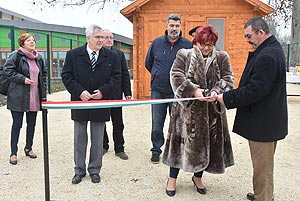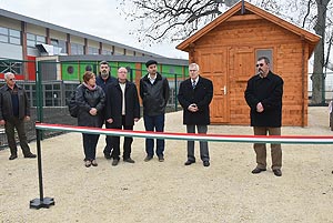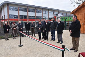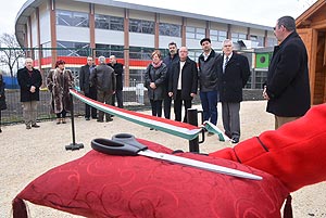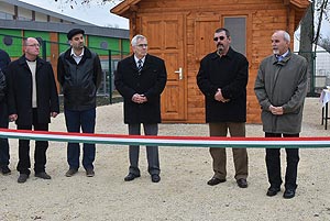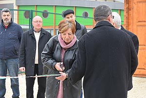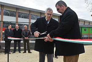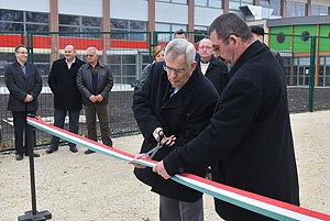 Dr. Demeter Attila alpolgármester és Döbrőssy Iván a szolgáltató kft. ügyvezetője vágta át ünnepélyes keretek között a nemzeti színű szalagot, majd a megjelent vendégek és önkormányzati képviselők, egy-egy darabkát vágtak maguknak emlékül.