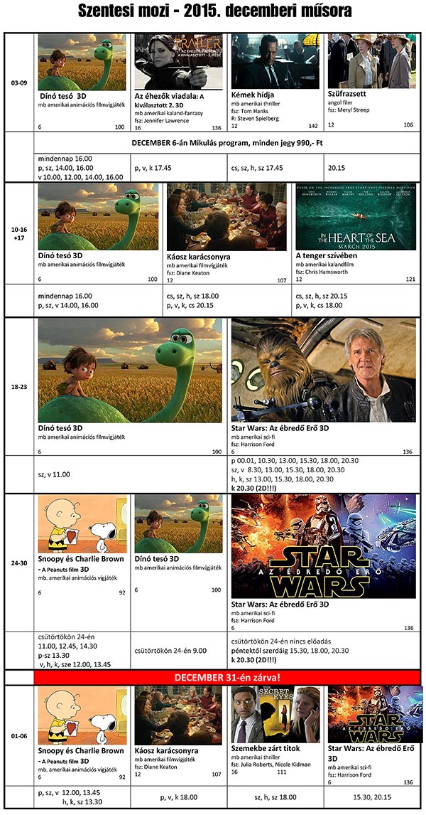 Nézd meg nálunk a legenda folytatását! Star Wars: Az ébredő erő december 18-ától a szentesi Őze Lajos Moziban! Jegyvásárlás és foglalás: http://www.szentesimozi.hu/film/192 – Telefonos jegyfoglalás: 63/789-577