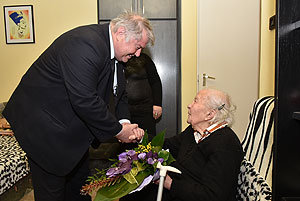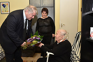 Szentes város polgármestere 2015. február 27-én köszöntötte Szappanos Ilonát 95. születésnapja alkalmából az Apponyi téri otthonában.