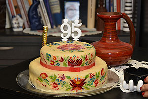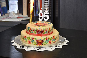 Ilona néni születésnapja alkalmából saját készítésű epres-túrós kalocsai mintás tortát kapott unokájától!