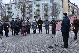 A megemlékezés végén az Önkormányzat, szentesi Cigány Nemzetiségi Önkormányzat, a Városi Könyvtár, az Árpád Szabadidős Sportklub, a Honvédség és Társadalombaráti Kör képviselői helyezték el az emlékezés koszorúit a 2004-ben állított emléktáblánál.