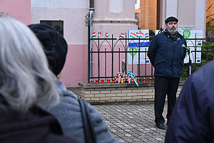 Kocsis Ferenc szavalata után a megemlékezés ünnepi szónoka Móra József, önkormányzati képviselő volt, aki visszaemlékezett a holokauszt szentesi eseményeire.