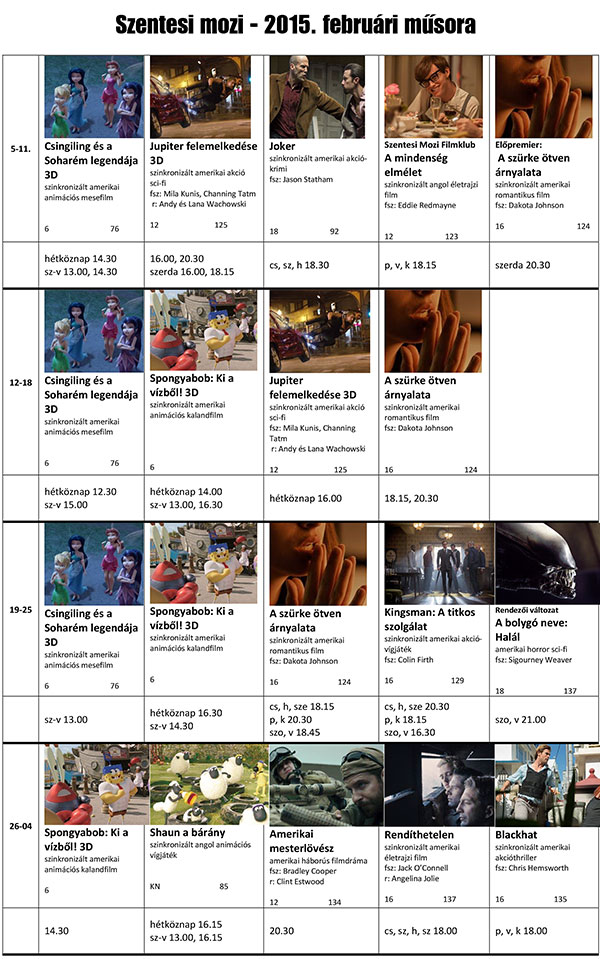Kinagyítható! Bővebb információért keressék a Szentesi Mozi web- és Facebook-oldalát: www.szentesimozi.hu, www.facebook.com/szentesimozi