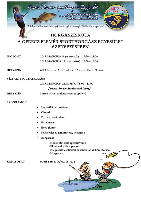 A Gerecz Elemér Sporthorgász Egyesület idén is megrendezi a Peca Sulit. 2015 március 5-én csütörtökön fél 5-től 6 óráig és március 12-én csütörtökön szintén fél 5-től várják horgász palántákat. Az első két alkalommal elméleti foglalkozást tartanak az egyesület ebédlőjében, majd vízparti foglalkozással zárul az oktatás. A vízparti foglalkozás 2015 március 21-én szombaton délelőtt 9 és 11 óra között lesz a Kurca városi szakaszán.