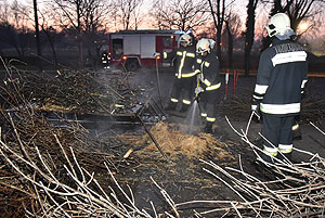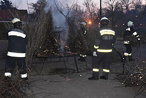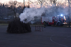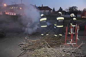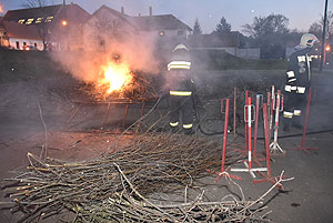 A lánglovagok a középre helyezett égő szalmabálát eloltották, így a máglya nagy része megmaradt és nem lesz akadálya a másnapi téltemetésnek.