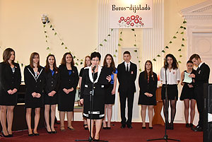 A műsor végén Somosné Puskás Krisztina, az iskola igazgatónője köszöntötte a vendégeket és a Boros díjra és a Közösségi díjra pályázókat.