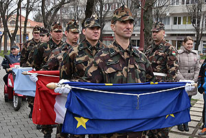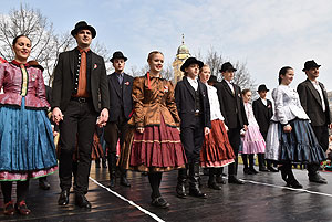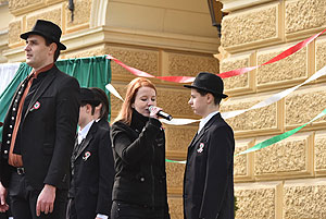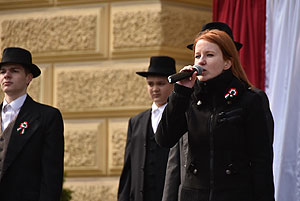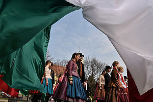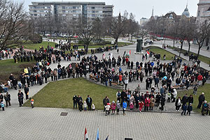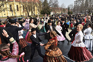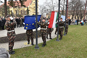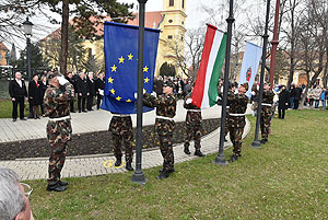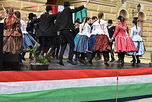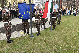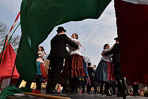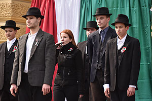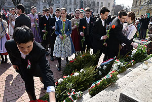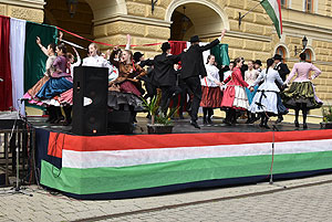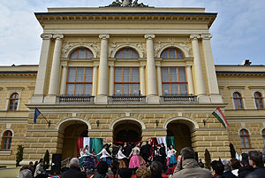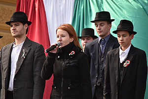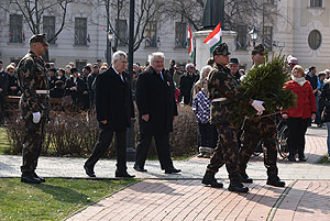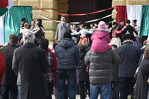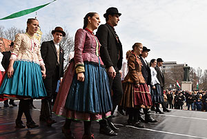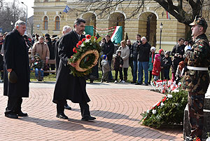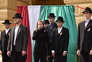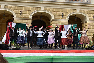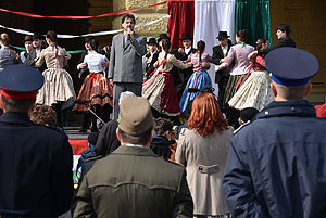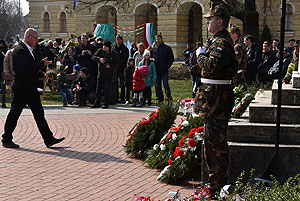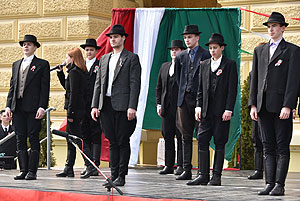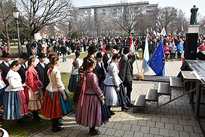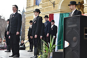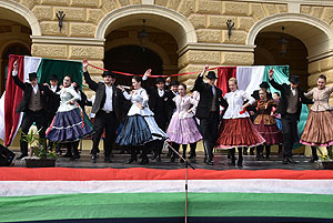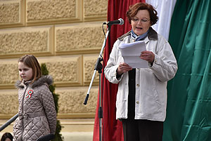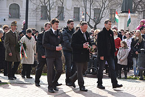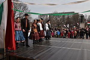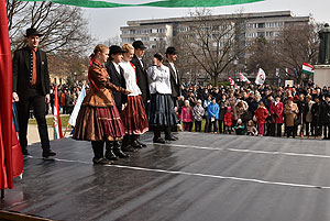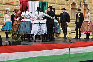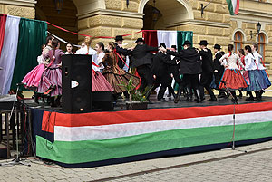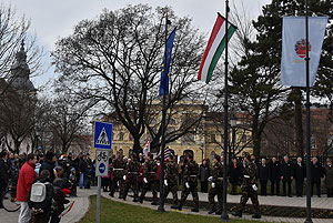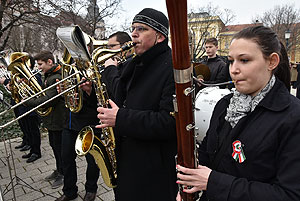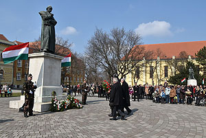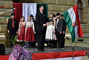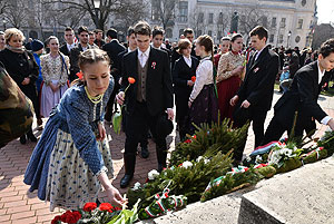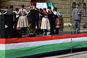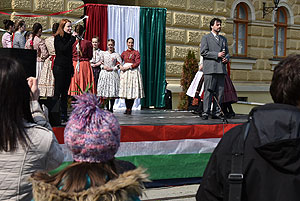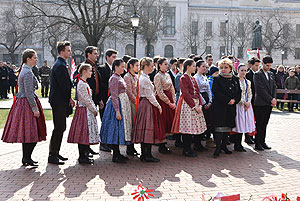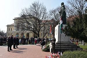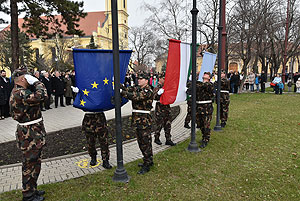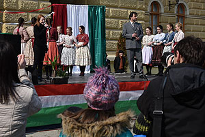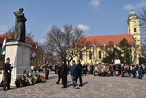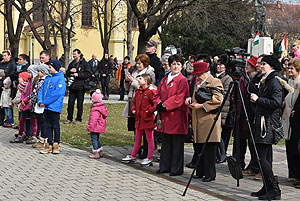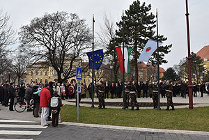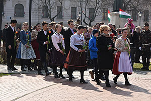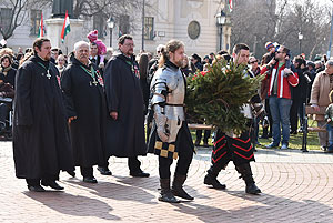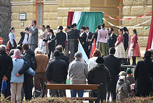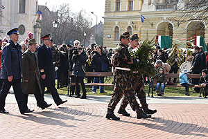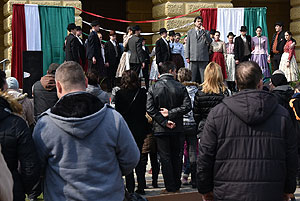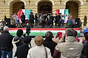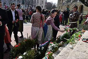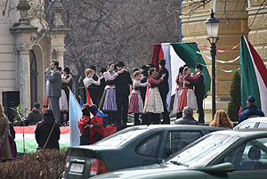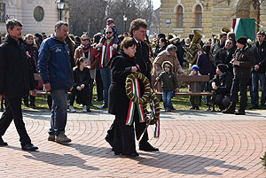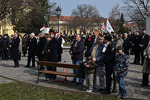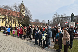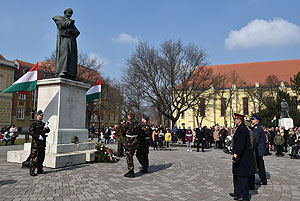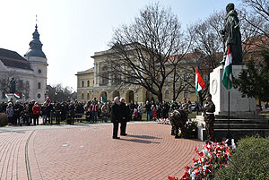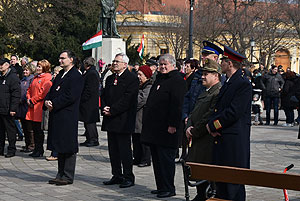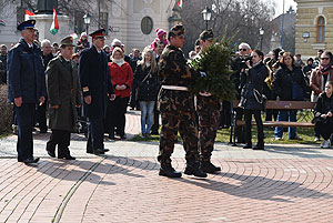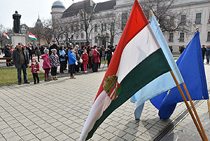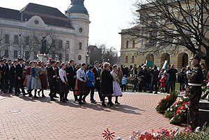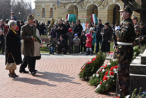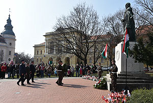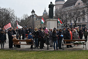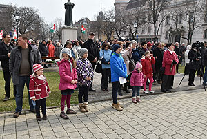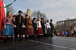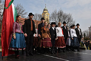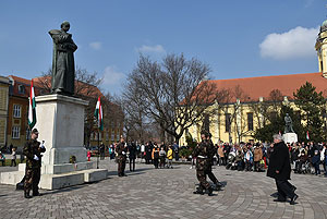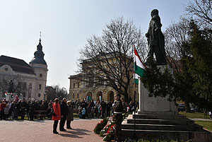 2015. március 15-én sokan gyűltek össze Szentesen a Kossuth téren az 1848/49-es magyar forradalom és szabadságharc évfordulójának tiszteletére rendezett ünnepségre.