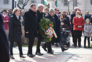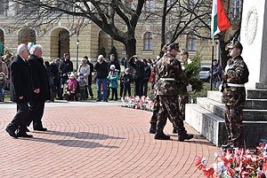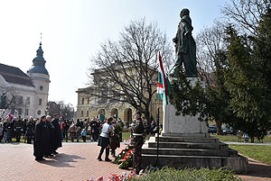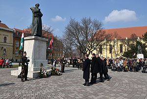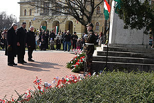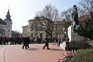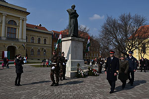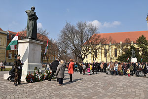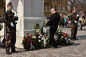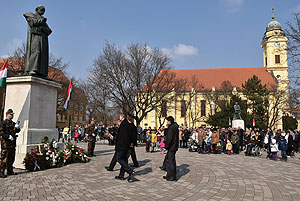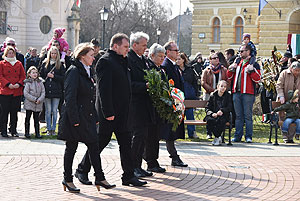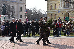 Tizenegy órakor ünnepélyes zászlófelvonással kezdődött Szentesen a Kossuth téren az 1848/49-es magyar forradalom és szabadságharc évfordulójának tiszteletére rendezett ünnepség. Ünnepi beszédet mondott Dr. Vörös Gabriella, majd "Március Idusán" címmel irodalmi műsort láthattunk, melyben közreműködött Andrádi Zsanett, Lénárt László, Presits Tamás színművészek és a „Jövőnkért” Alapfokú Művészeti Iskola néptánccsoportja. Ezt követően megkoszorúzták Kossuth Lajos és Horváth Mihály szobrát.