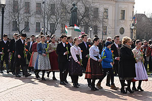 Sok ünnepe van a magyarságnak, de ez az a nap, ami megdobogtatja minden magyar szívét. Március 15. az összetartozás napja és a polgári Magyarország születésnapja. A szentesiek büszkék lehetnek elődeikre: a lakosság 10 százaléka a forradalom zászlója alá állt és vett részt a szabadságharcban. A főtéren Kossuth Lajos néptribun és Horváth Mihály katolikus pap, korabeli miniszter szobra figyelmeztet, a haladáshoz kell a csendes szó is.