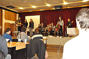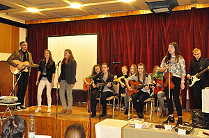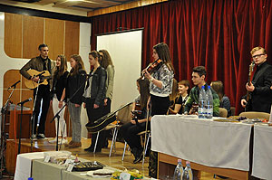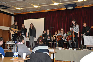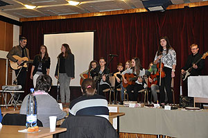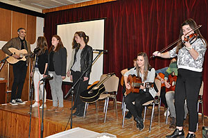 A vetélkedőn iskola egyik tanulója barátaival együtt közösen zenélt, örömet szerezve ezzel a résztvevőknek.