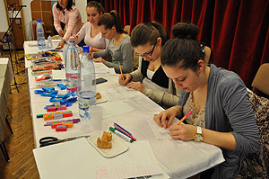 A szakképzős diákokból álló zsűrinek nem volt könnyű dolga, amikor a szebbnél szebb sütemények között kellett különbséget tenni. A csapatok ötletesen oldották meg ezt a feladatot is.