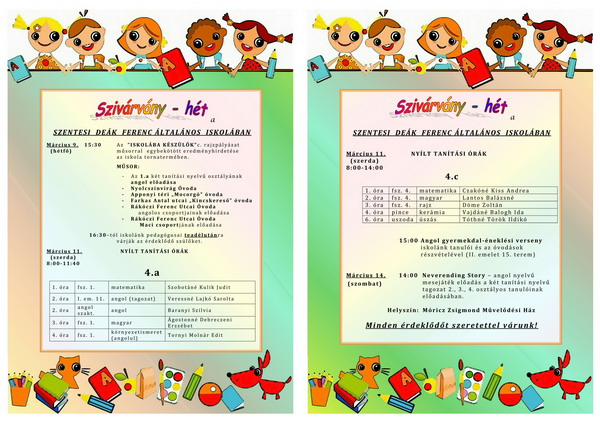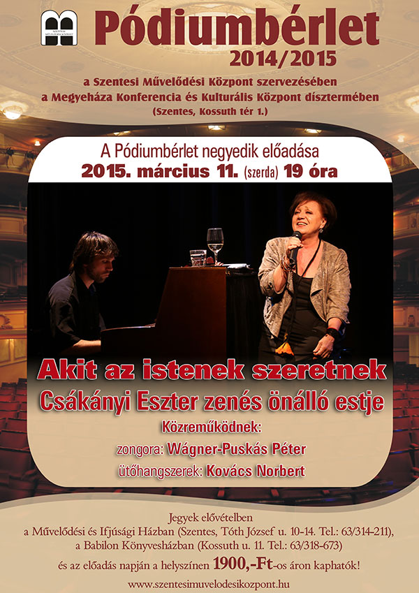 Igazán sok program lesz a tavasz első két hetében Szentesen. Jó szórakozást és kellemes kikapcsolódást kívánunk hozzájuk!