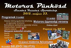 Motoros találkozót szervez a Honvéd Rákóczi Sportegyesület Szentesi Huszárok túramotoros szakosztálya 2015. május 23-án. Motoros ügyességi versenyekkel, koncertekkel, színes programokkal várnak minden érdeklődőt a Vasutas Sportpályára.