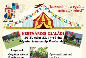 Idén is megrendezi a Kertvárosi Óvodások Képességfejlesztéséért alakult alapítvány az óvoda családi napját, melyre minden érdeklődőt és támogatót szeretettel várnak. A Százszorszép Óvoda udvara 2015. május 23-án valóságos cirkuszi akadémiává alakul át CSAK EGY NAPIG! Természetesen cirkuszi előadás nélkül nem cirkusz a cirkusz, és természetesen a pásztor tarhonya sem maradhat ki a délutáni programok közül.
