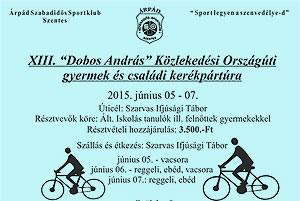 Immáron tizenharmadik alkalommar rendezi meg az Árpád Szabadidős Sportklub a "Dobos András" Közlekedési Országúti gyermek és családi kerékpártúrát. További részletek a plakáton!