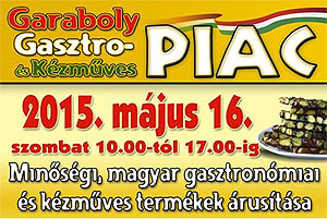 2015. május 16-án újra megtelítődik a Garaboly Gasztro- és Kézműves Piac a Művészetek házában. További részletek a plakáton! Katt a képre! Szentes, 2015. 05. 12.