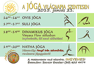 Ez alkalomból Szentesen a Kurca-part Kalandpark ad otthont a Jóga világnapi programoknak 2015. június 21-én, melyen a részvétel INGYENES!
