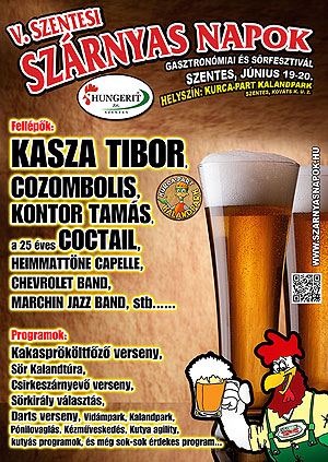2015. június 19-20-i időpontban ismét Szentes lesz a gasztronómiai és a sör fővárosa! Ezen a két napos eseményen számtalan program, finomabbnál finomabb ételek, és kiváló házi sörfőzdék remekei várják majd a látogatókat és turistákat. Az idei rendezvényen a Cseh Köztársaság kiváló sör remekeivel is megismerkedhetünk. A látogatók megkóstolhatják a finomabbnál finomabb szárnyasokból készült ételeket, és a remek söröket. Ihatunk majd világos, barna, vörös, búza, és gyümölcsös sörkülönlegességeket is! A rendezvény idén is a csodás zöld környezetben fekvő Kurca-part Kalandparkban kerül megrendezésre (Szentes, Kováts Károly u. 2.). Az idei rendezvényen a gasztronómiai kalandok mellett sok más izgalmas kaland várja majd a látogatókat. A rendezvény kiemelt támogatója a Hungerit Zrt. baromfifeldolgozó cég, amely termékei világszinten elismertek. A rendezvény minden napja tartogat meglepetéseket, akár ételről, italról, vagy vetélkedőről, legyen szó. Az idei évben ismét lesz Sörkirály választás, Csirkeszárnyevő verseny, Sör Kalandtúra, Kakas szépségverseny, Darts bajnokság. Idén is több mint 100 bográcsban készülnek a finomabbnál finomabb kakaspörköltek a Hungerit Kakasfőző versenyen!