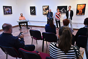 Czár Gergely, Harangozó-díjas táncművész megnyitójában elmondta, hogy nekik is élmény visszalátni művészetük pillanatait, mert hát a fotózás a pillanat művészete, a tánc pedig művészi pillanatok gyűjteménye.