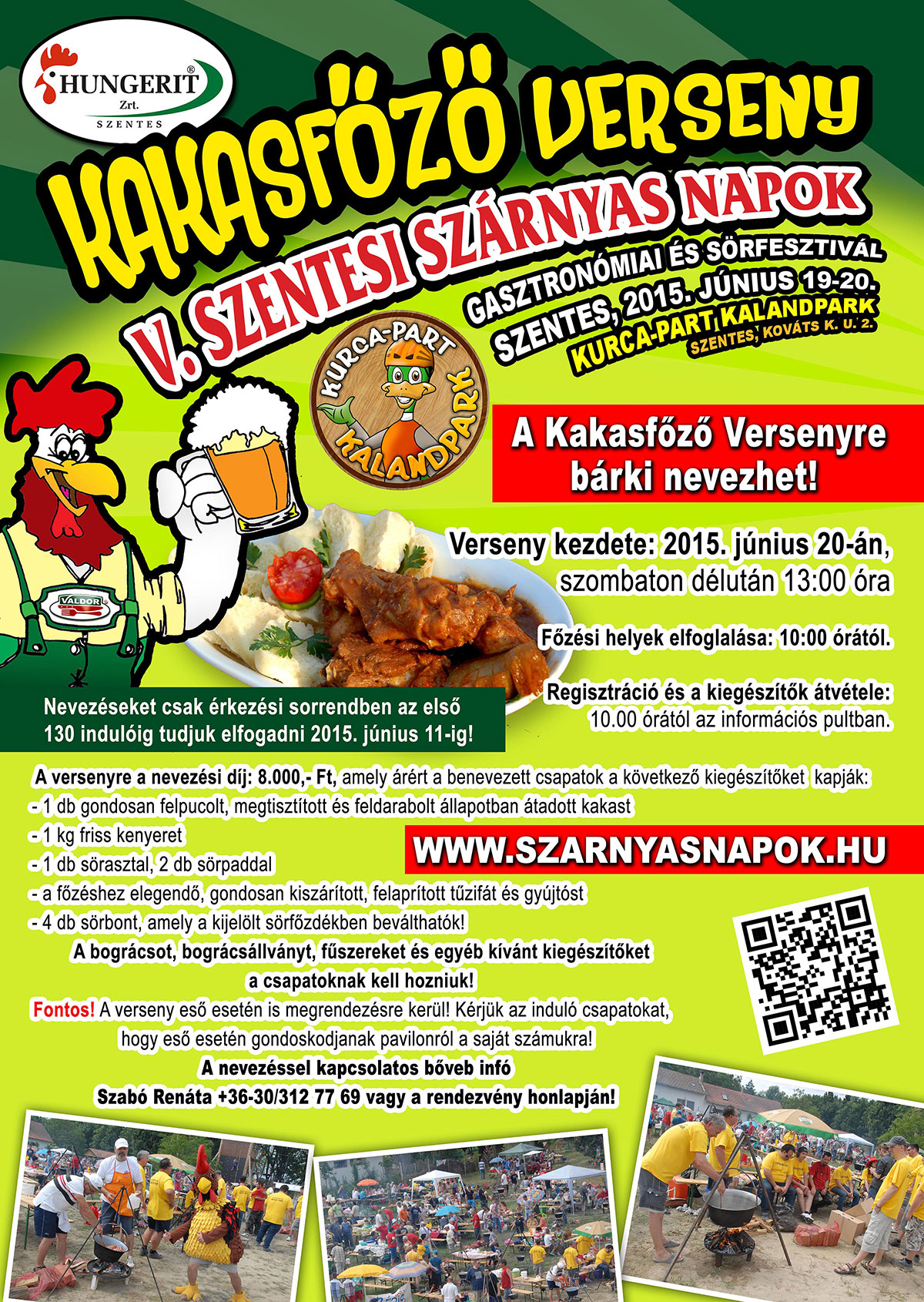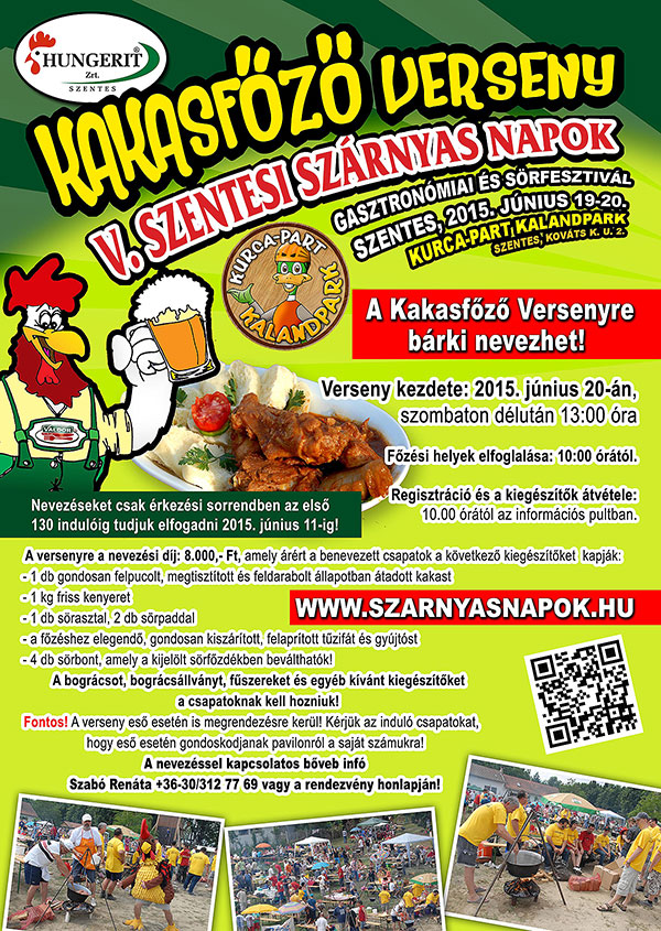 2015. június 19-20-i időpontban ismét Szentes lesz a gasztronómiai és a sör fővárosa! Ezen a két napos eseményen számtalan program, finomabbnál finomabb ételek, és kiváló házi sörfőzdék remekei várják majd a látogatókat és turistákat. Az idei rendezvényen a Cseh Köztársaság kiváló sör remekeivel is megismerkedhetünk. A látogatók megkóstolhatják a finomabbnál finomabb szárnyasokból készült ételeket, és a remek söröket. A rendezvény idén is a csodás zöld környezetben fekvő Kurca-part Kalandparkban kerül megrendezésre (Szentes, Kováts Károly u. 2.). Az idei rendezvényen a gasztronómiai kalandok mellett sok más izgalmas kaland várja majd a látogatókat.