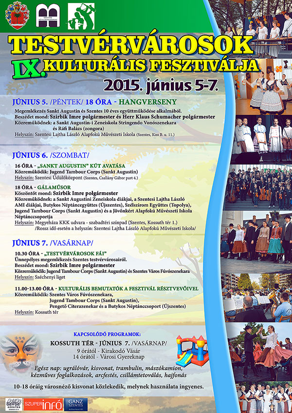 Az idén újra találkoznak Szentes testvérvárosai. Színes programsorozattal várnak minden érdeklődőt 2015. június 5-7 között.