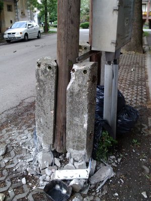 A Munkácsy utcában szombat éjjel haladó szürke VW először egy betongyámmal találkozott, majd nekiütközött a Filep-ház előtti iker villanyoszlopnak. Ugyan egy szemtanú az mondta, hogy az autó utasa szinte sértetlenül szállt ki a rommá tört járműből, közben kiderült, hogy a kórház baleseti osztályán kellett töltenie az anyák napi hétvégét. A környék lakói nem örültek a rendkívüli áramszünetnek. Az EDF Démász szakemberei a vasárnap délben láttak hozzá a sérült oszlop cseréjéhez. Az áram- és Internet szolgáltatás az esti órákra állt helyre.