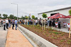 Ezután a vendégek kiutaztak az Ipari Park északi zónájába, a Bolgárkertészek utcába, ahol Szirbik Imre polgármester és Farkas Sándor országgyűlési képviselő a nemzeti szalag átvágásával felavatta a Kísérleti Telepet
